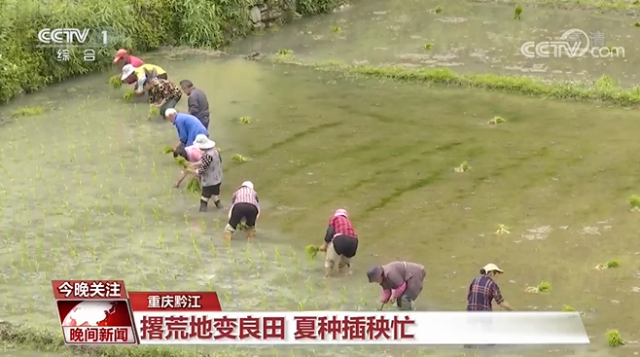 在重慶市黔江區(qū),這幾天正是稻田插秧的農(nóng)忙時節(jié),23日開始,在海拔1000余米的黔江區(qū)鄰鄂鎮(zhèn)高坪村,山腳下的水稻田里,數(shù)十名村民分工協(xié)作,飛快地分苗、插秧,現(xiàn)場一派忙碌景象。這片占地200畝的優(yōu)質(zhì)水稻基地原本是一片撂荒地,兩年前,當?shù)赝ㄟ^土地標準化治理,發(fā)展優(yōu)質(zhì)水稻種植,同時采用“村集體+合作社”模式拓寬經(jīng)營渠道。