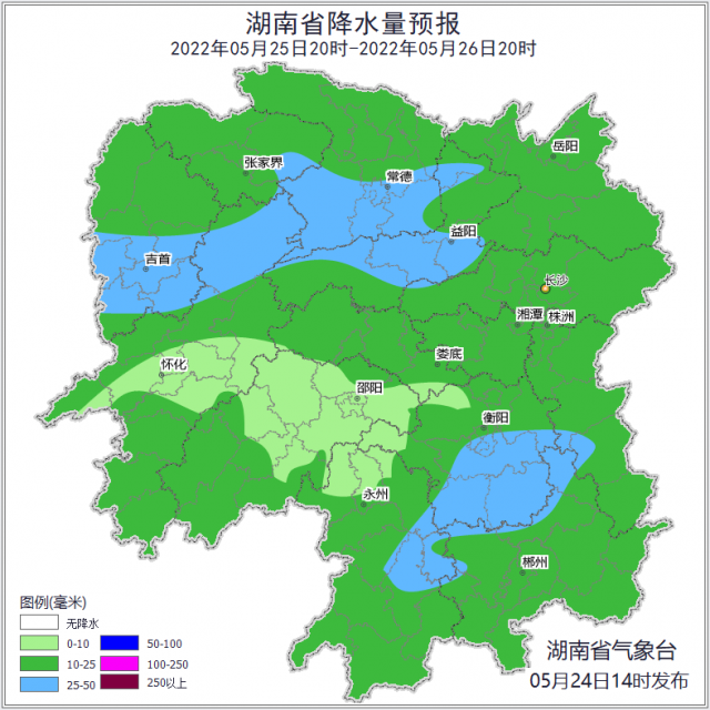 近期湖南雨水不休,湘中、湘南降雨偏多,陰雨日數(shù)多,累積雨量大。其中24日,湘南局地暴雨,25日至27日降雨范圍擴(kuò)大,強(qiáng)度減弱,全省大部有小到中雨,湘南和湘中局地大雨。氣溫呈穩(wěn)步回升態(tài)勢(shì)。