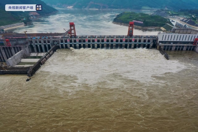 在大藤峽水利樞紐工程現(xiàn)場,21個泄水閘門中已抬起敞開泄洪,出庫流量由9000立方米/秒加大至17000立方米/秒,降低壩面水位至汛限水位47.6米以下,保證工程防汛安全。