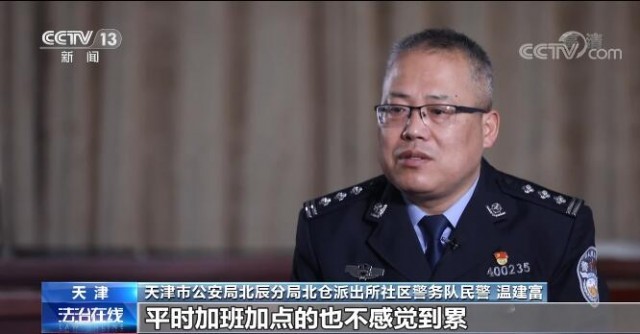 天津市公安局北辰分局北倉(cāng)派出所社區(qū)警務(wù)隊(duì)民警 溫建富:管的時(shí)間也長(zhǎng)了,老百姓這關(guān)系也融洽了,建立了深厚的感情,關(guān)系特別好,平時(shí)加班加點(diǎn)也不感到累。
