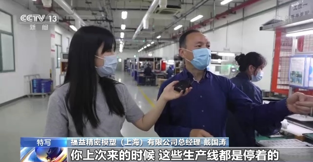 福益精密模塑(上海)有限公司總經(jīng)理 戴國濤:你上次來的時(shí)候這些生產(chǎn)線都是停著的,今天我們都已經(jīng)正常生產(chǎn)了。直到目前,我們是24小時(shí)開工在加足馬力,所有的情況都在往好的方向轉(zhuǎn)。