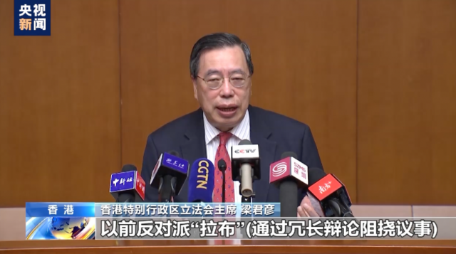 梁君彥說(shuō):“以前反對(duì)派‘拉布’(通過(guò)冗長(zhǎng)辯論阻撓議事),把你拉到什么都做不了。反對(duì)派就是用所有不同的方法拖‘一國(guó)兩制’的后腿?!?/p>