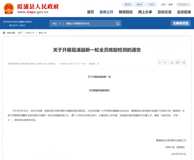 央視網(wǎng)消息:據(jù)霞浦縣人民政府網(wǎng)站消息,福建省寧德市霞浦縣應對新冠肺炎疫情工作領導小組(指揮部)7月3日發(fā)布通報, 7月3日5時30分,經(jīng)初步篩查,霞浦縣發(fā)現(xiàn)1例新冠肺炎核酸檢測初篩陽性。為切實保障廣大市民身體健康和生命安全,霞浦縣應對新冠肺炎疫情工作領導小組(指揮部)決定于7月3日12時在全縣范圍內(nèi)開展新一輪全員核酸檢測工作。