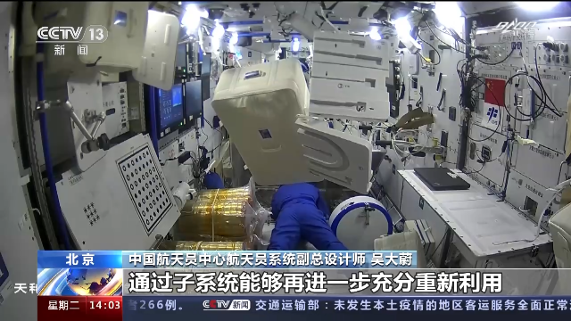 中國航天員中心航天員系統(tǒng)副總設計師 吳大蔚:它(二氧化碳還原系統(tǒng))主要是能夠實現再生,把我們呼出的二氧化碳,通過子系統(tǒng)能夠再進一步充分重新利用,再用于我們的空間站,所以能夠節(jié)約大量資源,減少我們上行的資源和代價。