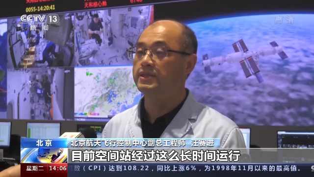 北京航天飛行控制中心副總工程師 汪賽進:目前空間站經過這么長時間運行,工況正常,姿態(tài)穩(wěn)定,能源平衡。