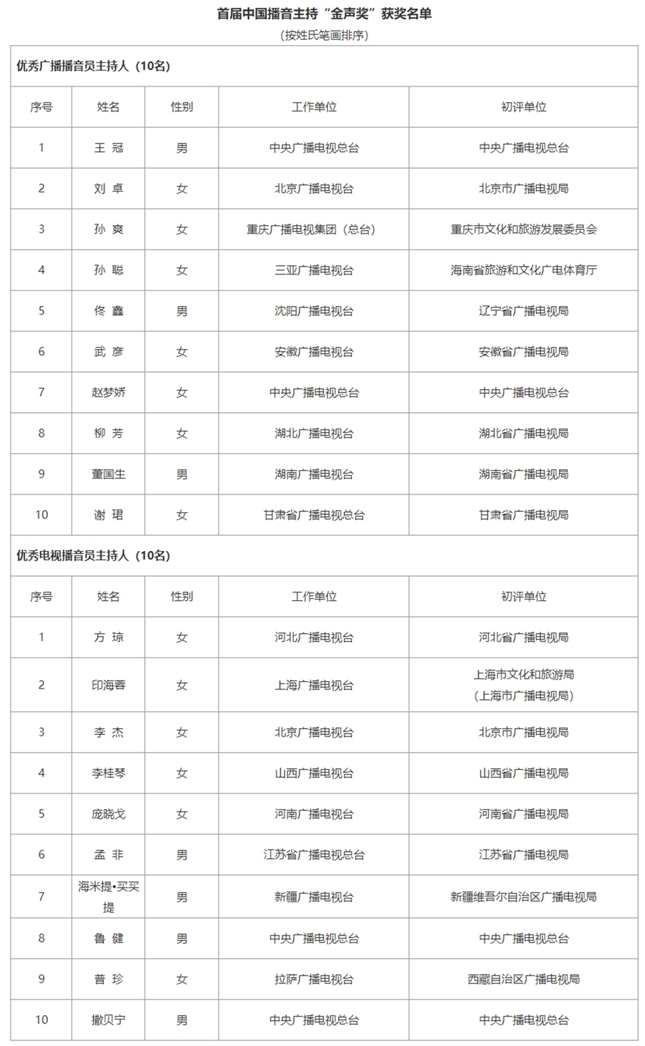 撒貝寧、孟非等20人獲首屆中國(guó)播音主持金聲獎(jiǎng)