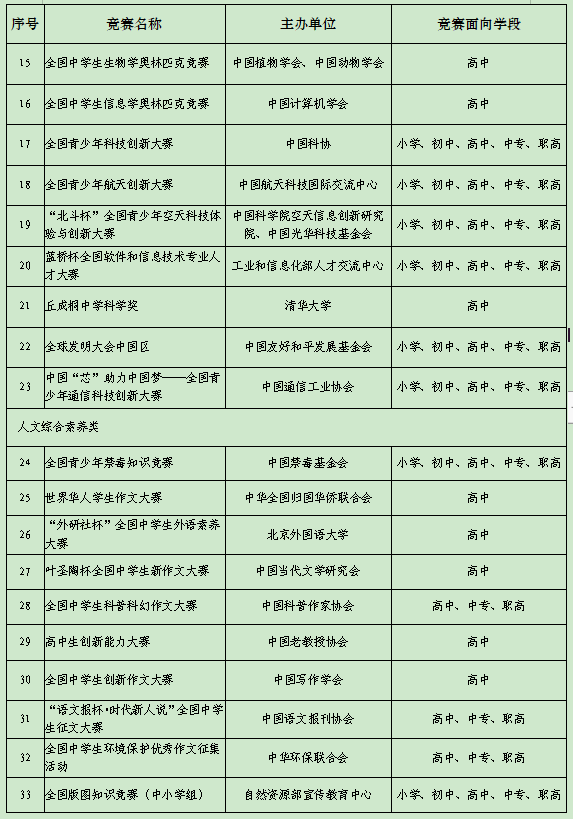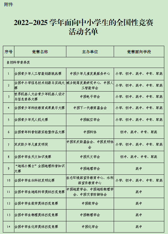 教育部公示2022-2025學(xué)年面向中小學(xué)生的45項(xiàng)全國性競(jìng)賽活動(dòng)名單