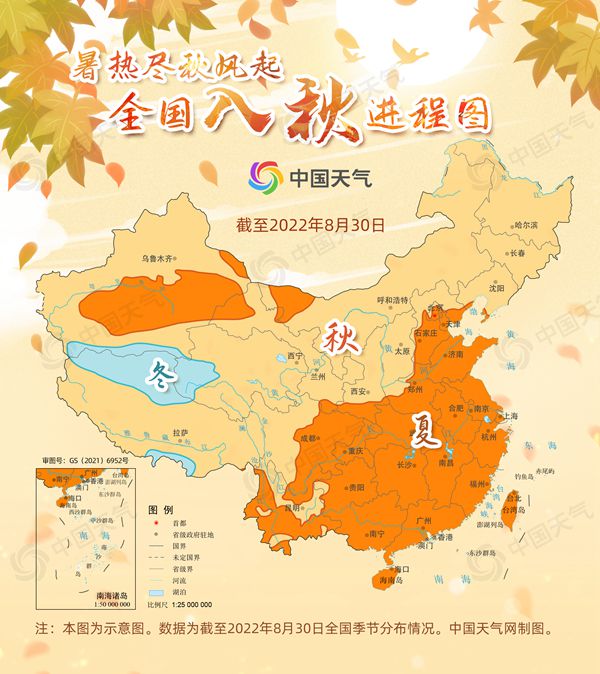 從目前最新預(yù)報(bào)來看,本周,我國的秋季版圖還可能繼續(xù)向南擴(kuò)張,北方晝夜溫差會加大,秋意愈濃。不過,石妍表示,南方大部地區(qū)暫時(shí)還不會開啟入秋進(jìn)程,常年來看,江漢、江淮一帶入秋要等到9月中旬以后;江南等地則要等到10月份才會陸續(xù)開啟入秋進(jìn)程。