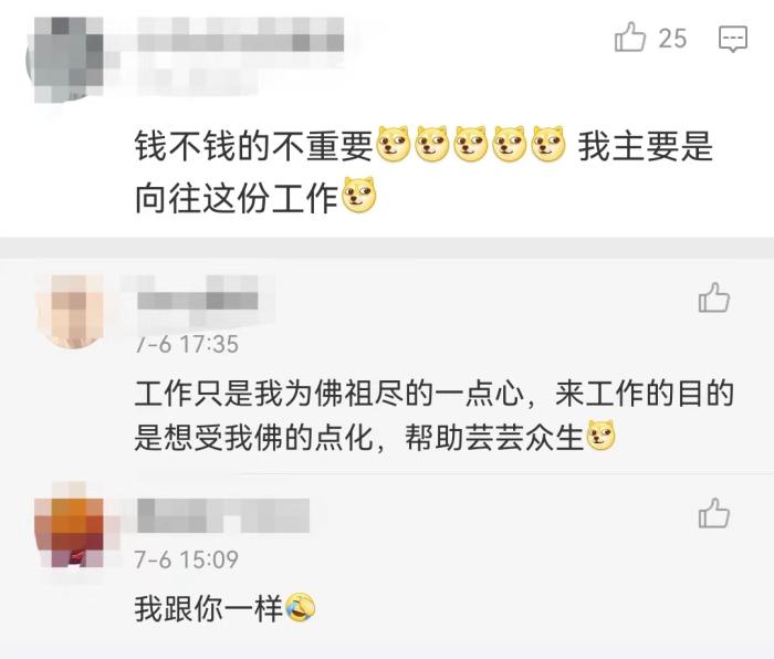 有不少網(wǎng)友在招聘啟事下留言:錢(qián)不錢(qián)的不重要,主要是向往這份工作;這不是我夢(mèng)中情工嗎……