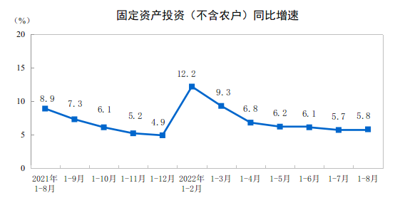 2022年1—8月份全國(guó)固定資產(chǎn)投資增長(zhǎng)5.8%