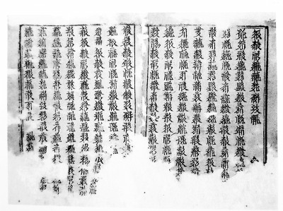 這一時期西夏文字的創(chuàng)制則完全借鑒和模仿了漢字。在字體結(jié)構(gòu)上,西夏文字和漢字一樣,有偏旁部首,基本筆畫也有漢字的點、橫、豎、撤、捺、提等,以致識漢字的人“乍視,字皆可識,熟視,無一字可識”。漢文和西夏文一樣,是西夏的通用文字,漢學(xué)教授漢文,蕃學(xué)教授番文(西夏文),出土的西夏公文,既有漢文也有西夏文。國家的法令也一樣,夏仁宗李仁孝頒行的《天盛改舊新定律令》有番文和漢文兩種文本,目前只保留下來番文文本。