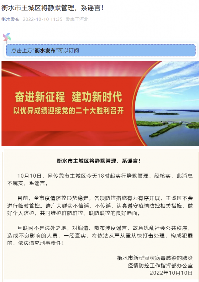河北衡水市主城區(qū)將靜默管理?官方:系謠言