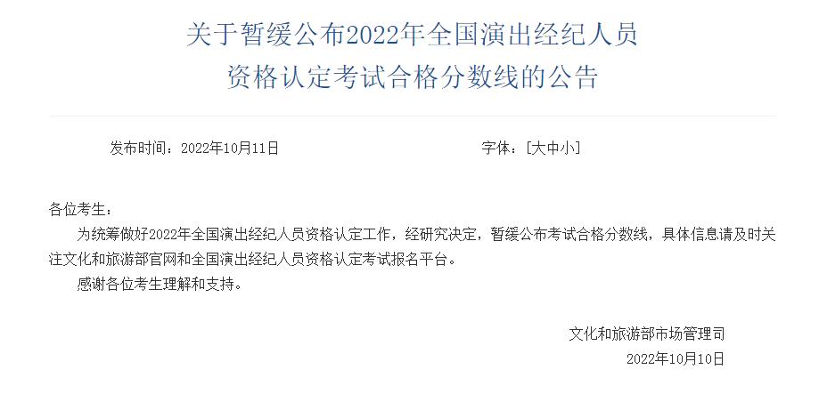 文旅部:暫緩公布演出經(jīng)紀(jì)人員資格認(rèn)定考試合格分?jǐn)?shù)線