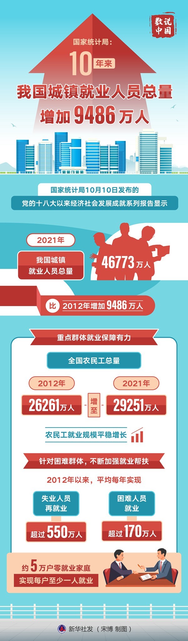 國家統(tǒng)計(jì)局:10年來我國城鎮(zhèn)就業(yè)人員總量增加9486萬人
