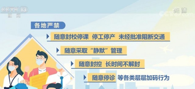 《通知》明確要求,各地嚴(yán)禁隨意封校停課、停工停產(chǎn)、未經(jīng)批準(zhǔn)阻斷交通,隨意采取“靜默”管理,隨意封控、長時間不解封,隨意停診等各類層層加碼行為,加大通報、公開曝光力度,對造成嚴(yán)重后果的依法依規(guī)嚴(yán)肅追責(zé)。對于沒有發(fā)生疫情的地區(qū),要嚴(yán)格按照第九版防控方案確定的范圍對風(fēng)險崗位、重點人員開展核酸檢測,既不能隨意擴(kuò)大核酸檢測范圍,也不能隨意擴(kuò)大人員管控、社區(qū)封控、隔離轉(zhuǎn)運范圍。糾正“一天兩檢”“一天三檢”等不科學(xué)做法。疫情發(fā)生地要分類有序做好外地滯留人員疏解,目的地不得拒絕接受滯留人員返回,既要避免疫情外溢,也不得加碼管控。