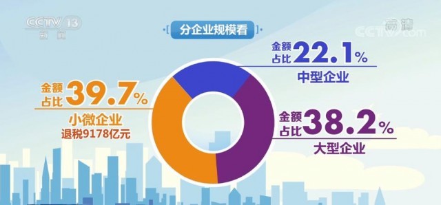 分企業(yè)規(guī)??矗衲暌詠?,已獲得留抵退稅的納稅人中,小微企業(yè)戶數(shù)占比93.1%,是受益主體,共享受退稅9178億元,金額占比39.7%。中型企業(yè)、大型企業(yè)的金額占比分別為22.1%和38.2%。