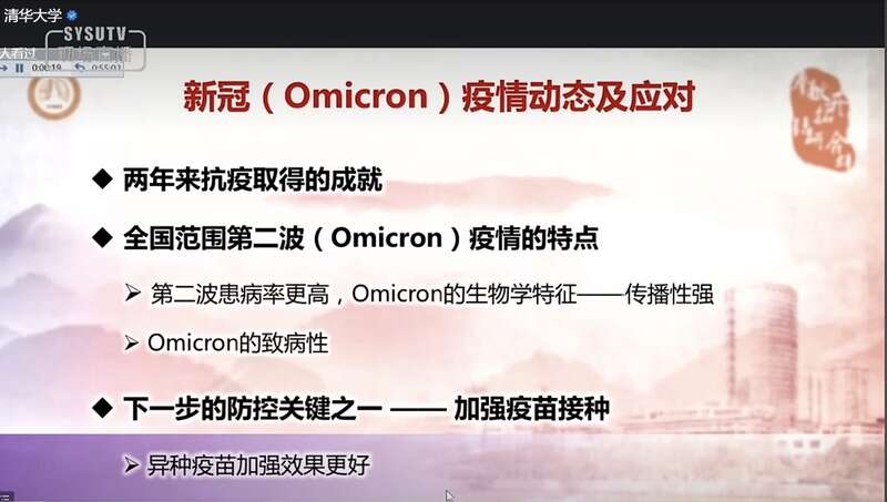 本次講座是“全國高??挂叽笾v堂”的一次活動,由中山大學(xué)、北京大學(xué)、清華大學(xué)共同主辦。鐘南山系統(tǒng)分析了全國范圍第二波奧密克戎疫情的特點,介紹了奧密克戎的生物學(xué)特征、致病性,以及在大學(xué)教學(xué)環(huán)境中如何讓學(xué)生加強個人防護,青年人如何應(yīng)對新冠,加強個人防護的8條建議等。