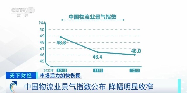央視網(wǎng)消息:中國物流與采購聯(lián)合會今天(1月4日)公布2022年12月份中國物流業(yè)景氣指數(shù)。受到疫情的短期沖擊,物流供應鏈受到一定程度的擾動,城市配送、電商快遞受影響較大。后期隨著疫情防控政策持續(xù)優(yōu)化,疫情影響減弱,預計產(chǎn)業(yè)鏈恢復節(jié)奏將逐步加快,需求端逐步回穩(wěn)向上,行業(yè)復蘇進程有望明顯改善。