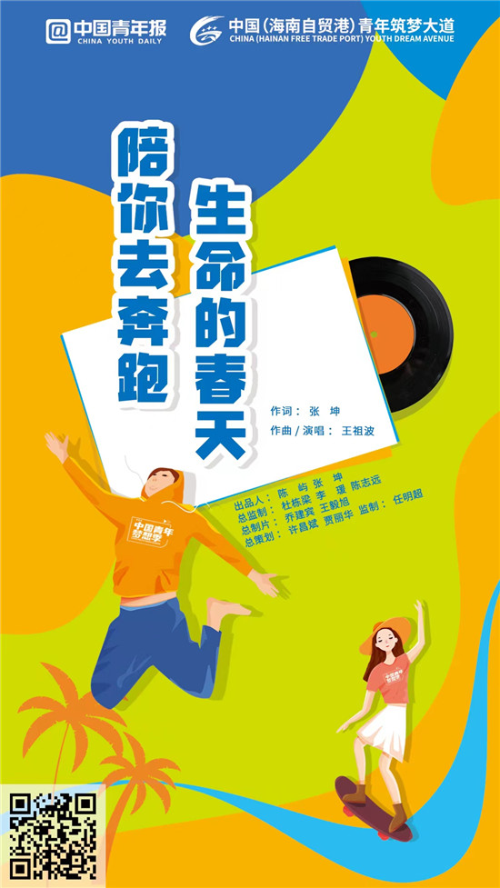 《生命的春天陪你去奔跑》就是這樣一首送給全國青年朋友的MV。這首MV由中國青年報社、共青團海南省委聯(lián)合出品,團海南省委辦公室主任王祖波作曲,一線優(yōu)秀青年代表演唱,平凡人用心創(chuàng)作唱給平凡人聽,希望為家國圓夢創(chuàng)造不平凡的業(yè)績,希望為“中國(海南自貿港)青年筑夢大道”(以下簡稱“筑夢大道”)插上一起向未來的夢想的翅膀。