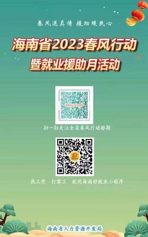 近日,人力資源社會保障部推出的2023年春風(fēng)行動暨就業(yè)援助月活動正在各地火熱開展。今年,多地還出現(xiàn)了直播帶崗這一新的招聘會模式。人社部將及時發(fā)布各地的活動情況,送崗位到勞動者身邊。大家可以通過掃描下方二維碼,進(jìn)入網(wǎng)站鏈接或微信小程序進(jìn)行查看。