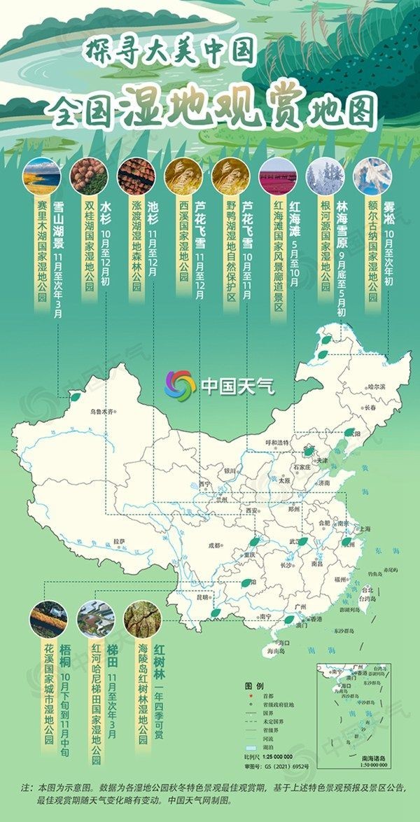 濕地不僅能為人們提供四季不同的可觀賞景觀,還是十分重要的自然生態(tài)系統(tǒng),為大量的動(dòng)植物提供棲息地,既能保護(hù)生物的多樣性,也能調(diào)節(jié)氣候、凈化水質(zhì)。有興趣的朋友可根據(jù)最佳觀賞期前往觀賞,提醒大家出游仍需注意佩戴口罩,做好健康防護(hù)工作。(中國(guó)天氣網(wǎng) 文/江漪 設(shè)計(jì)/任成英 數(shù)據(jù)支持/李靚)