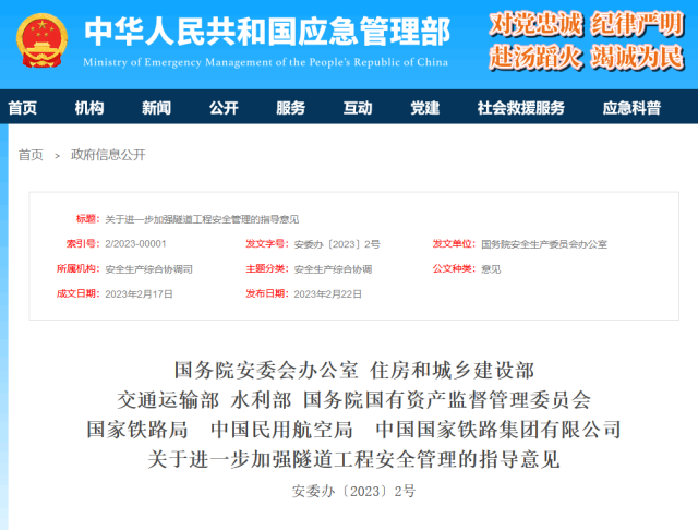 央視網(wǎng)消息:據(jù)應(yīng)急管理部網(wǎng)站消息,國務(wù)院安委會(huì)辦公室等八部門發(fā)布關(guān)于進(jìn)一步加強(qiáng)隧道工程安全管理的指導(dǎo)意見。全文如下: