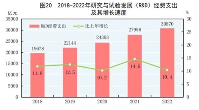 中國網(wǎng)財經(jīng)2月28日訊 國家統(tǒng)計局28日發(fā)布的2022年國民經(jīng)濟和社會發(fā)展統(tǒng)計公報顯示,2022年,全年研究與試驗發(fā)展(R&D)經(jīng)費支出30870億元,比上年增長10.4%,與國內(nèi)生產(chǎn)總值之比為2.55%,其中基礎(chǔ)研究經(jīng)費1951億元。國家自然科學(xué)基金共資助5.19萬個項目。截至年末,正在運行的國家重點實驗室533個,納入新序列管理的國家工程研究中心191個,國家企業(yè)技術(shù)中心1601家,大眾創(chuàng)業(yè)萬眾創(chuàng)新示范基地212家。國家科技成果轉(zhuǎn)化引導(dǎo)基金累計設(shè)立36支子基金,資金總規(guī)模624億元。國家級科技企業(yè)孵化器1425家,國家備案眾創(chuàng)空間2441家。