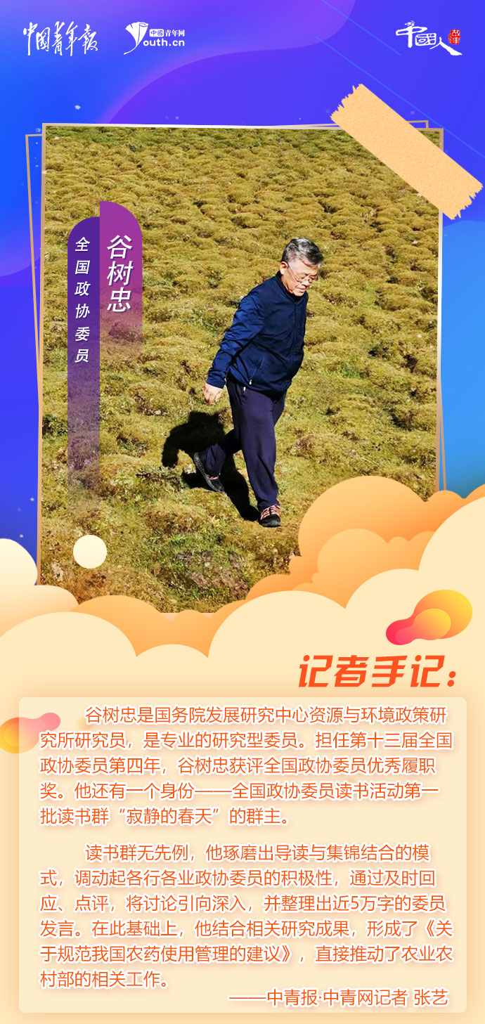 谷樹忠被稱作“研究型委員”,他既是國務院發(fā)展研究中心資源與環(huán)境政策研究所研究員,也是審計署特邀審計員。在許多人的印象中,背著雙肩包、身著黑色休閑夾克,坐地鐵或騎自行車,是他每次來全國政協(xié)開會的“標配”。