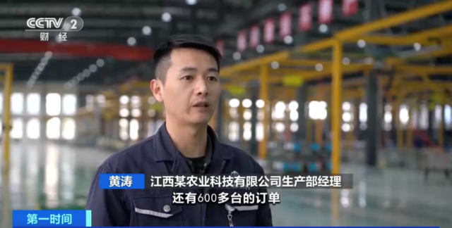 江西某農(nóng)業(yè)科技有限公司生產(chǎn)部經(jīng)理 黃濤:還有600多臺的訂單,在持續(xù)生產(chǎn)中,我們?nèi)σ愿盀榇焊翰ヌ峁┪镔Y保障。