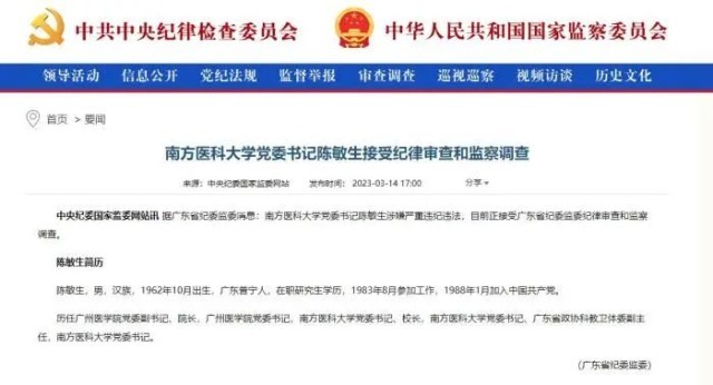 3月14日,中央紀委國家監(jiān)委發(fā)布兩則涉及醫(yī)藥衛(wèi)生領(lǐng)域干部被查的消息,落馬官員分別為南方醫(yī)科大學黨委書記陳敏生,廣西壯族自治區(qū)醫(yī)療保障局原黨組書記、局長王忠平。