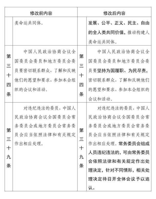 中國人民政治協(xié)商會議章程 修改前后內(nèi)容對照表