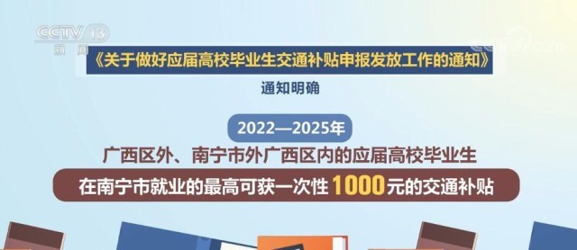 近期,南寧市人社局印發(fā)了《關(guān)于做好應(yīng)屆高校畢業(yè)生交通補(bǔ)貼申報(bào)發(fā)放工作的通知》,其中明確,2022—2025年,廣西區(qū)外、南寧市外廣西區(qū)內(nèi)的應(yīng)屆高校畢業(yè)生,在南寧市就業(yè)的最高可獲一次性1000元的交通補(bǔ)貼。