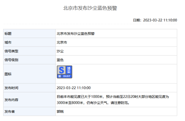 北京降級(jí)發(fā)布沙塵藍(lán)色預(yù)警