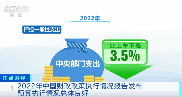 在民眾關(guān)心的“三公”經(jīng)費等方面,2022年,黨政機(jī)關(guān)堅持過緊日子,提高財政資源配置效率。嚴(yán)控一般性支出,中央部門支出比上年下降3.5%。