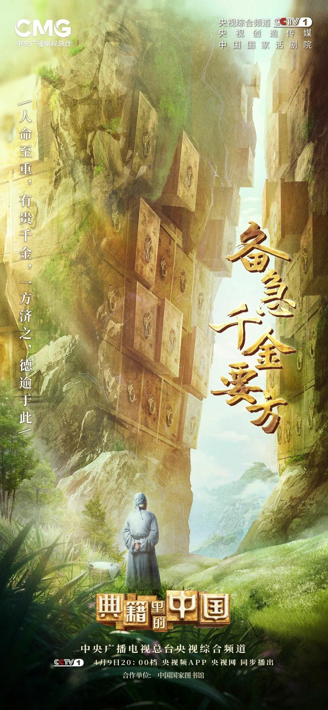 4月9日(周日)晚八點檔,由中央廣播電視總臺出品,央視綜合頻道、央視創(chuàng)造傳媒和中國國家話劇院聯(lián)合打造,中國國家圖書館參與的大型文化節(jié)目《典籍里的中國》第二季收官之作,帶你識讀《備急千金要方》!(央視新聞客戶端)