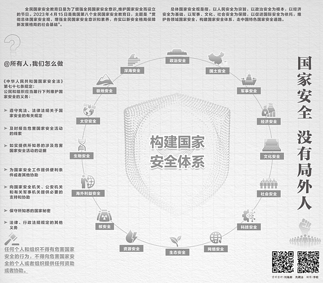 全民國家安全教育日是為了增強(qiáng)全民國家安全意識(shí),維護(hù)國家安全而設(shè)立的節(jié)日。2023年4月15日是我國第八個(gè)全民國家安全教育日,主題是“貫徹總體國家安全觀,增強(qiáng)全民國家安全意識(shí)和素養(yǎng),夯實(shí)以新安全格局保障新發(fā)展格局的社會(huì)基礎(chǔ)”。