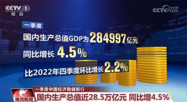 一季度,國(guó)內(nèi)生產(chǎn)總值(GDP)為284997億元,同比增長(zhǎng)4.5%,比2022年四季度環(huán)比增長(zhǎng)2.2%。在疫情防控取得重大決定性勝利后,中國(guó)經(jīng)濟(jì)逐步回升走穩(wěn),再次彰顯出大國(guó)經(jīng)濟(jì)的韌性與活力。