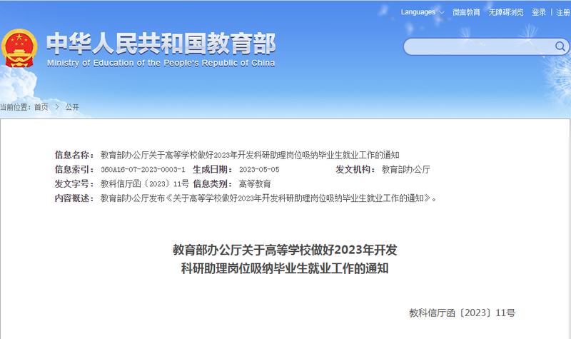 中國(guó)青年報(bào)客戶(hù)端北京5月9日電(中青報(bào)·中青網(wǎng)記者 葉雨婷)記者今天從教育部獲悉,教育部辦公廳發(fā)布“關(guān)于高等學(xué)校做好2023年開(kāi)發(fā)科研助理崗位吸納畢業(yè)生就業(yè)工作的通知”指出,要加強(qiáng)組織領(lǐng)導(dǎo),統(tǒng)籌科研、人事、財(cái)務(wù)、就業(yè)等相關(guān)部門(mén),充分挖掘資源和自身潛力,切實(shí)推進(jìn)開(kāi)發(fā)科研助理崗位吸納2023屆高校畢業(yè)生就業(yè)工作。教育部將把科研助理崗位及實(shí)聘人數(shù)作為安排推薦免試攻讀研究生名額的重要參考因素。