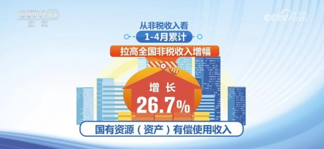 從非稅收入看,1月—4月累計(jì),全國(guó)非稅收入同比增長(zhǎng)6.8%。其中,國(guó)有資源(資產(chǎn))有償使用收入增長(zhǎng)26.7%,拉高了全國(guó)非稅收入增幅。全國(guó)行政事業(yè)性收費(fèi)收入和罰沒(méi)收入分別下降13.3%和18.7%。