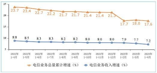 工信部:2023年1—4月份電信業(yè)務(wù)收入同比增長(zhǎng)7.2%