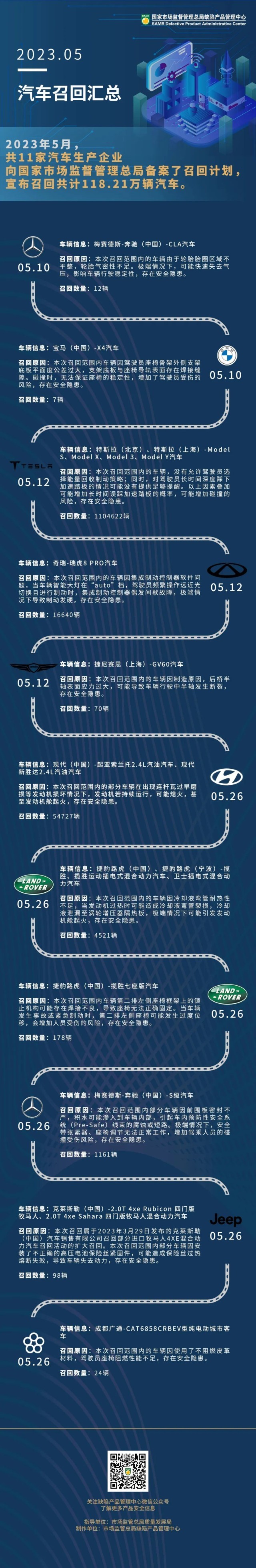 市場(chǎng)監(jiān)管總局:今年5月,11家車企共召回汽車超118萬輛