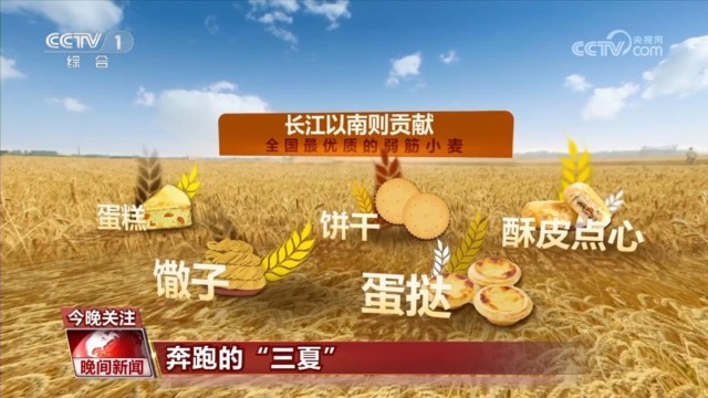 再向南看,與北方高筋、中筋小麥相對(duì)應(yīng)的,長江以南則貢獻(xiàn)了全國最優(yōu)質(zhì)的弱筋小麥,是蛋糕、餅干、馓子、蛋撻、酥皮點(diǎn)心等面食小吃的重要原料。
