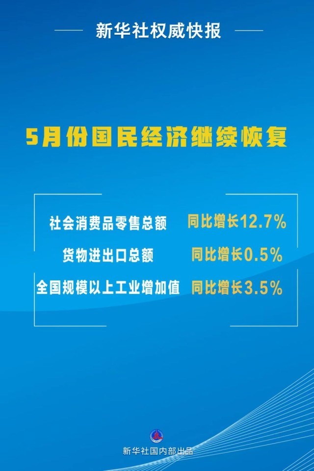 - 國家統(tǒng)計局:5月份國民經(jīng)濟(jì)延續(xù)恢復(fù)態(tài)勢