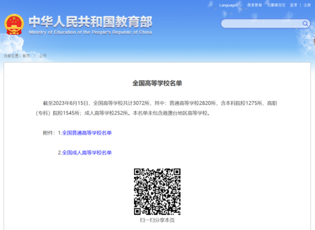 3072所!教育部發(fā)布全國(guó)高等學(xué)校名單