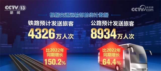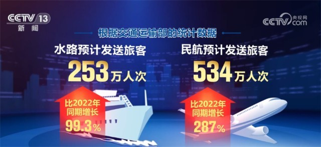 端午假期,全國鐵路、公路、水路、民航預(yù)計共發(fā)送旅客14047萬人次,比2022年同期增長89.1%。其中,鐵路預(yù)計發(fā)送旅客4326萬人次,比2022年同期增長150.2%;公路預(yù)計發(fā)送旅客8934萬人次,比2022年同期增長64.4%;水路預(yù)計發(fā)送旅客253萬人次,比2022年同期增長99.3%;民航預(yù)計發(fā)送旅客534萬人次,比2022年同期增長287%。