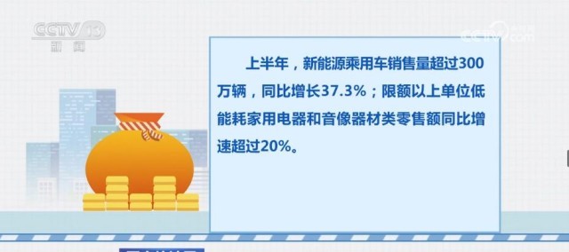 隨著居民消費(fèi)理念轉(zhuǎn)變,促進(jìn)消費(fèi)提質(zhì)升級政策顯效,消費(fèi)新動能持續(xù)增強(qiáng)。上半年,新能源乘用車銷售量超過300萬輛,同比增長37.3%;限額以上單位低能耗家用電器和音像器材類零售額同比增速超過20%。