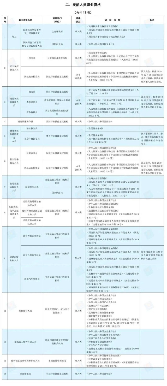 人社部公布的《國(guó)家職業(yè)資格目錄》中