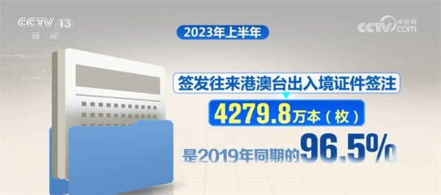 今年上半年,各地公安機關(guān)出入境管理部門共簽發(fā)普通護(hù)照1000余萬本,是2019年同期的68.2%;簽發(fā)往來港澳臺出入境證件簽注4279.8萬本(枚),是2019年同期的96.5%;為在華外國人辦理停留居留證件37.9萬人次,是2019年同期的86.7%。