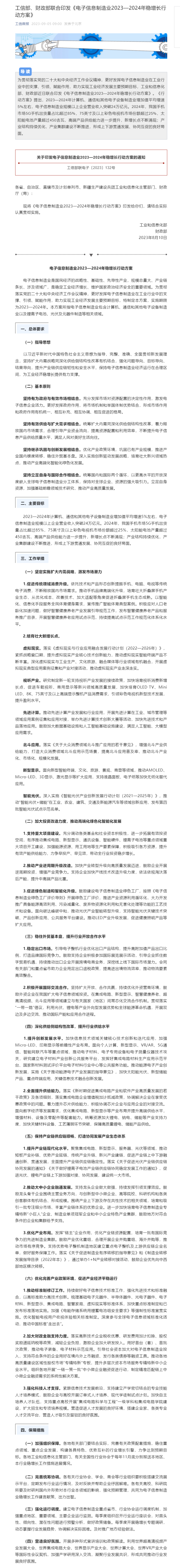 工信部、財(cái)政部聯(lián)合印發(fā)《電子信息制造業(yè)2023—2024年穩(wěn)增長行動(dòng)方案》