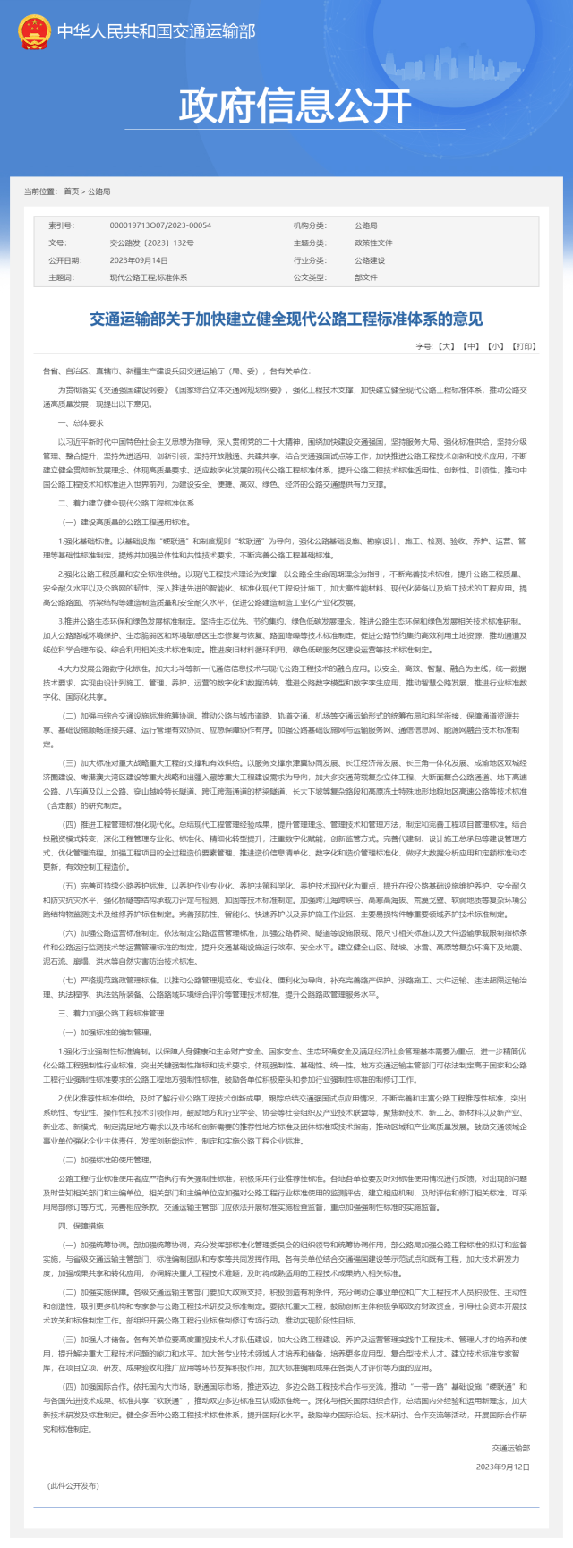 央視網(wǎng)消息:交通運(yùn)輸部發(fā)布關(guān)于加快建立健全現(xiàn)代公路工程標(biāo)準(zhǔn)體系的意見。其中提出,大力發(fā)展公路數(shù)字化標(biāo)準(zhǔn)。加大北斗等新一代通信信息技術(shù)與現(xiàn)代公路工程技術(shù)的融合應(yīng)用。以安全、高效、智慧、融合為主線,統(tǒng)一數(shù)據(jù)技術(shù)要求,實(shí)現(xiàn)由設(shè)計(jì)到施工、管理、養(yǎng)護(hù)、運(yùn)營的數(shù)字化和數(shù)據(jù)流轉(zhuǎn),推進(jìn)公路數(shù)字模型和數(shù)字孿生應(yīng)用,推動智慧公路發(fā)展,推進(jìn)行業(yè)標(biāo)準(zhǔn)數(shù)字化、國際化共享。